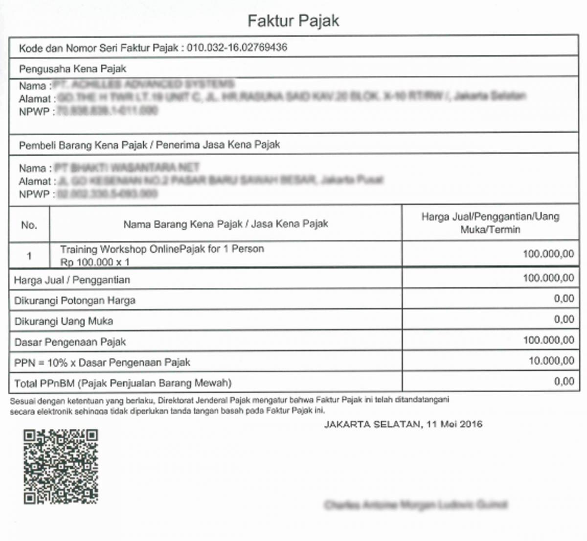 Contoh Faktur Pajak Elektronik