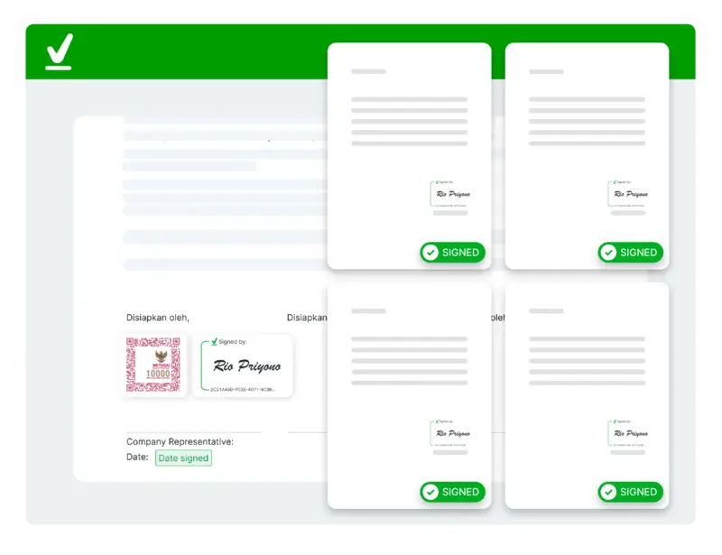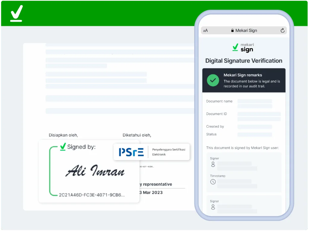 - Efisiensi Waktu: Proses penandatanganan menjadi lebih cepat dan mudah, memungkinkan dokumen ditandatangani dari mana saja menggunakan perangkat digital.