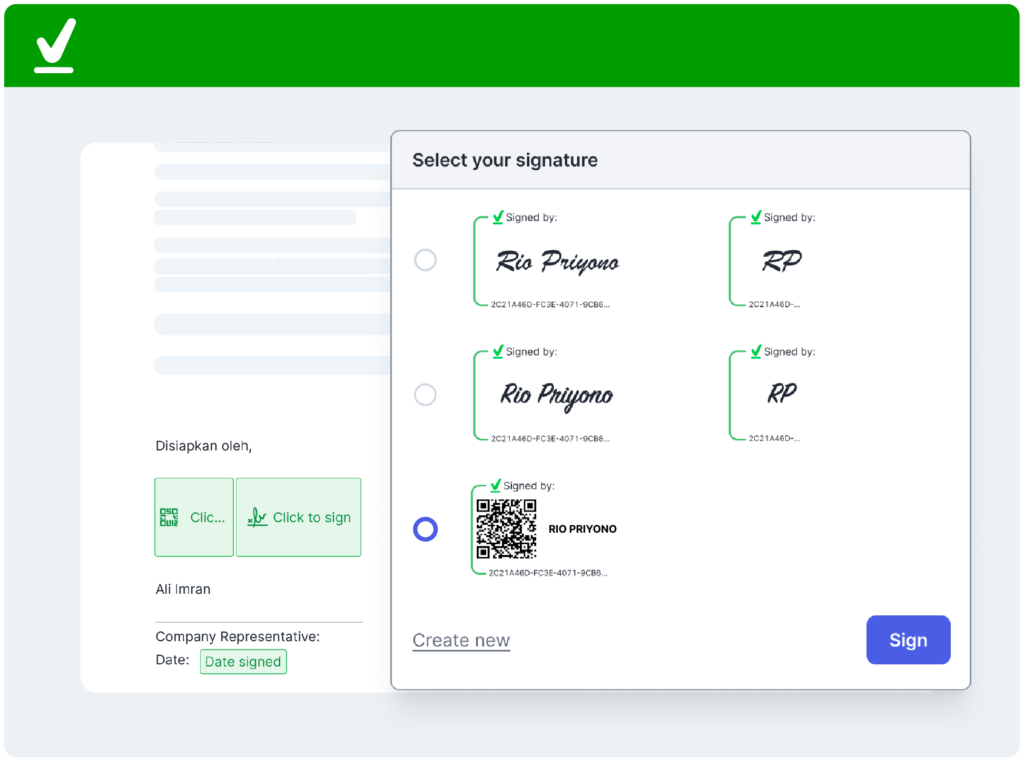 - Bubuhkan tanda tangan QR code pada dokumen